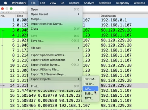 - Then go to File > Export Objects and we can see that there are 5 types of Objects that WS can export by default